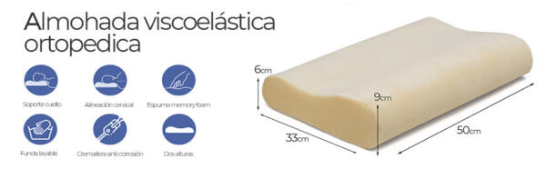 Almohada ergonómica cervical viscoelástica 33×50 9cm alto